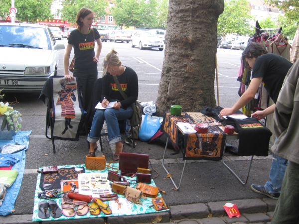 Ce beau samedi de septembre, Nous étions quatres à tenir un stand à la braderie de Lille sur la place du marché de wazemmes. Quatres à brader ou plutôt vendre l’artisanat burkinabé mais aussi promouvoir notre association.