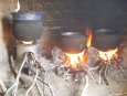 | La photo, ci contre représente un foyer traditionnel ( ou foyer 3 pierres ) qui est encore utilisé en Afrique de l’Ouest par beaucoup de familles. Ce foyer de fortune est malheureusement très exposé au vent et sans isolation ce qui explique son rendement très médiocre, de l’ordre de 10% ( source Bolivia Inti ) |